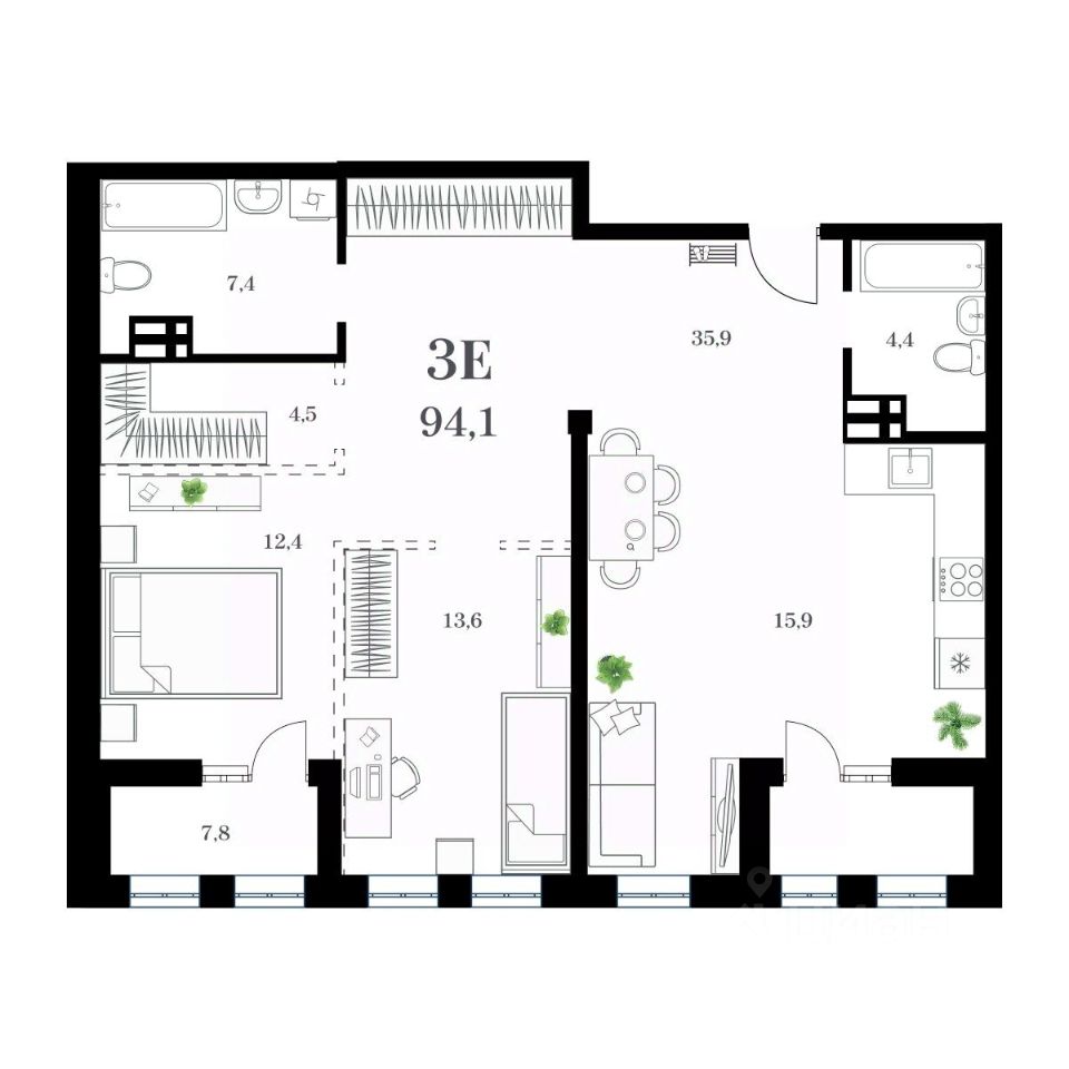 Общая площадь94,1 м²