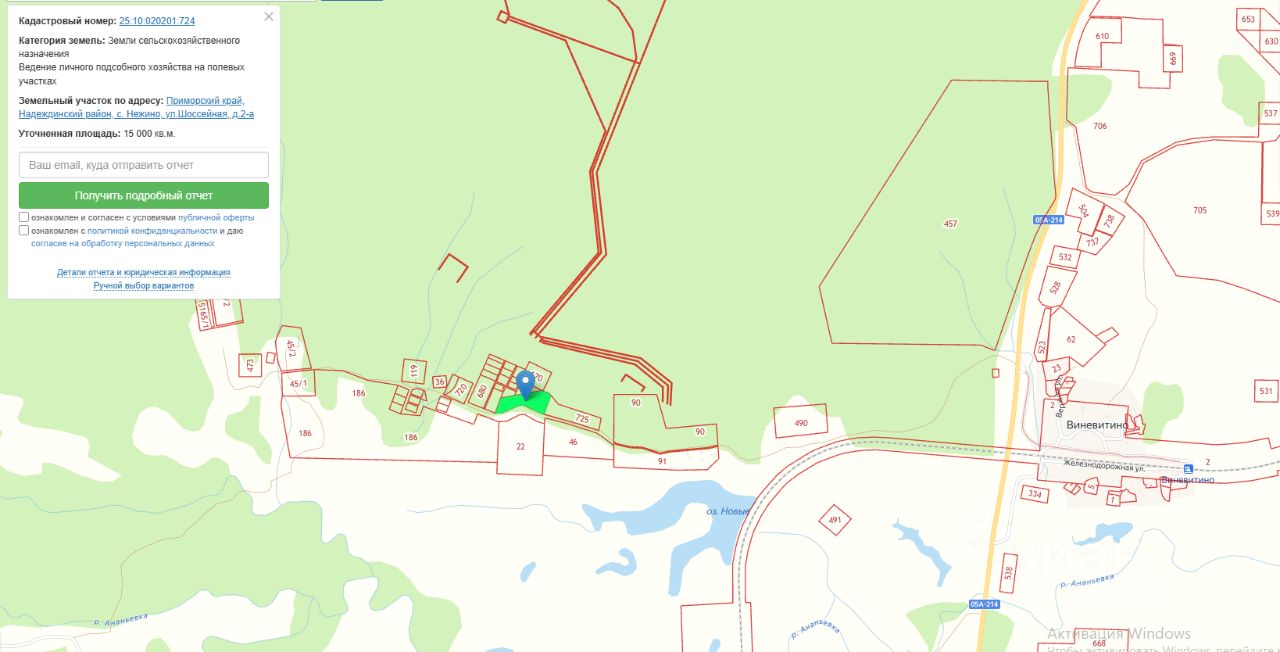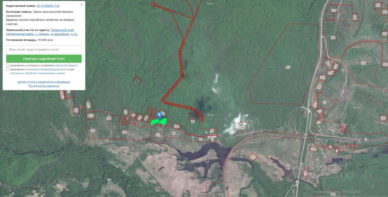 Площадь участка 1,5 га. Кадастровый номер земельного участка: 25:10:020201:724