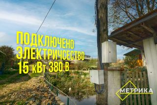 Фундамент - ленточный, дом построен из кирпича, свет 15кВт (380 вольт), хоз. постройка для хранения строительного инвентаря.