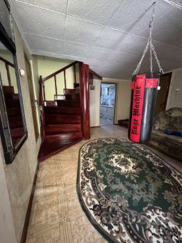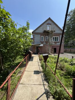 Двухэтажный дом ( 4 комнаты) и цокольное помещение с большой прихожей, гардеробной , бытовой комнатой , двумя кладовками, лоджия два туалета, душ.