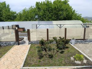 Участок превращен в настоящий райский уголок: здесь есть уютные зоны для отдыха, где можно наслаждаться тишиной и природой, а также просторные площадки для встреч с друзьями и семьей.