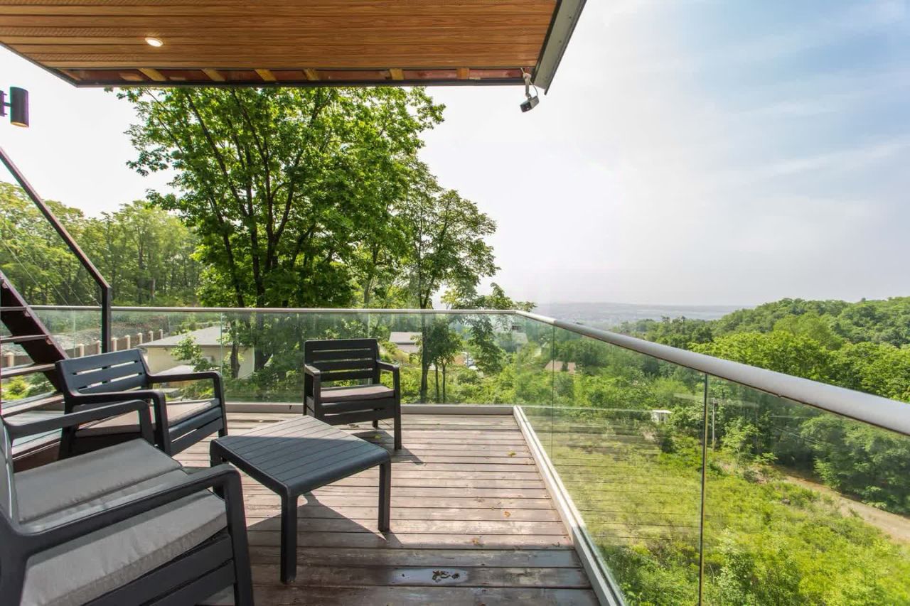 Дом находится в закрытом поселке с потрясающим видом на город. Выход на панорамный балкон с любого помещения. На террасе можно проводить приятные вечера за чашкой чая в кругу самых близких. Дом отлично подойдет для семьи с детьми, т.к. имеет 3 спальни и кухню-гостиную. Дом построен для себя из качественных современных и долговечных материалов. Собственником продумана каждая деталь. Ремонт современный, вам останется только завезти личные вещи. Собственник оставляет практически всю мебель (кроме двуспальной кровати, уличной мебели и мелкой бытовой техники).