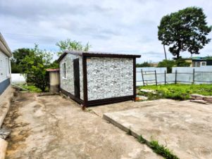 На территории имеются хозяйственные постройки, теплица. Беседка является украшением мангальной зоны. А так же хотелось бы отметить, что имеются 2 входа в дом. И что, за счёт планируемого в доме гаража, увеличена жилая площадь на 100 кв.м. При желании можно вернуть назначение помещения обратно.