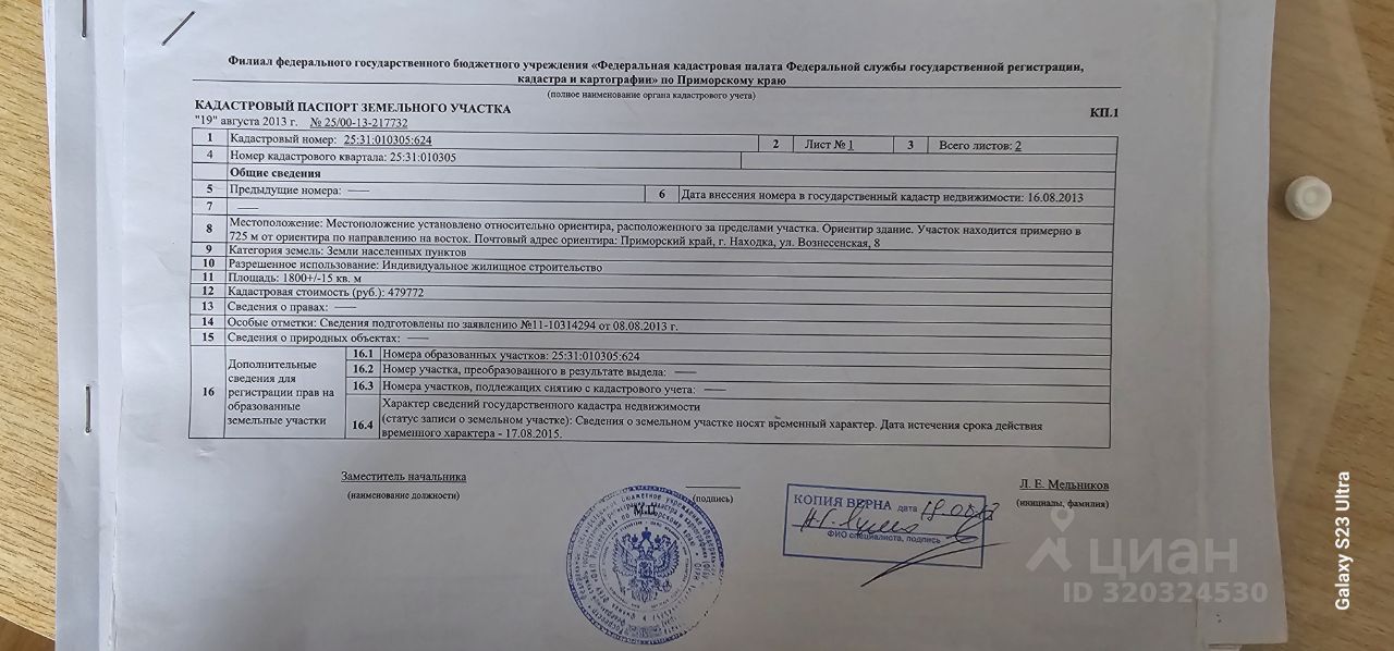 Кадастровый номер участка 25:31:010305:*** указал продавец