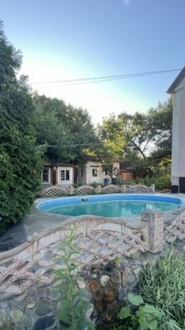 Размер участка — 15 соток. На территории расположены: гостевой дом площадью 63 м², вольер для собак, открытая беседка, большой бассейн, крытая беседка, сарай, а также просторный загон для животных.