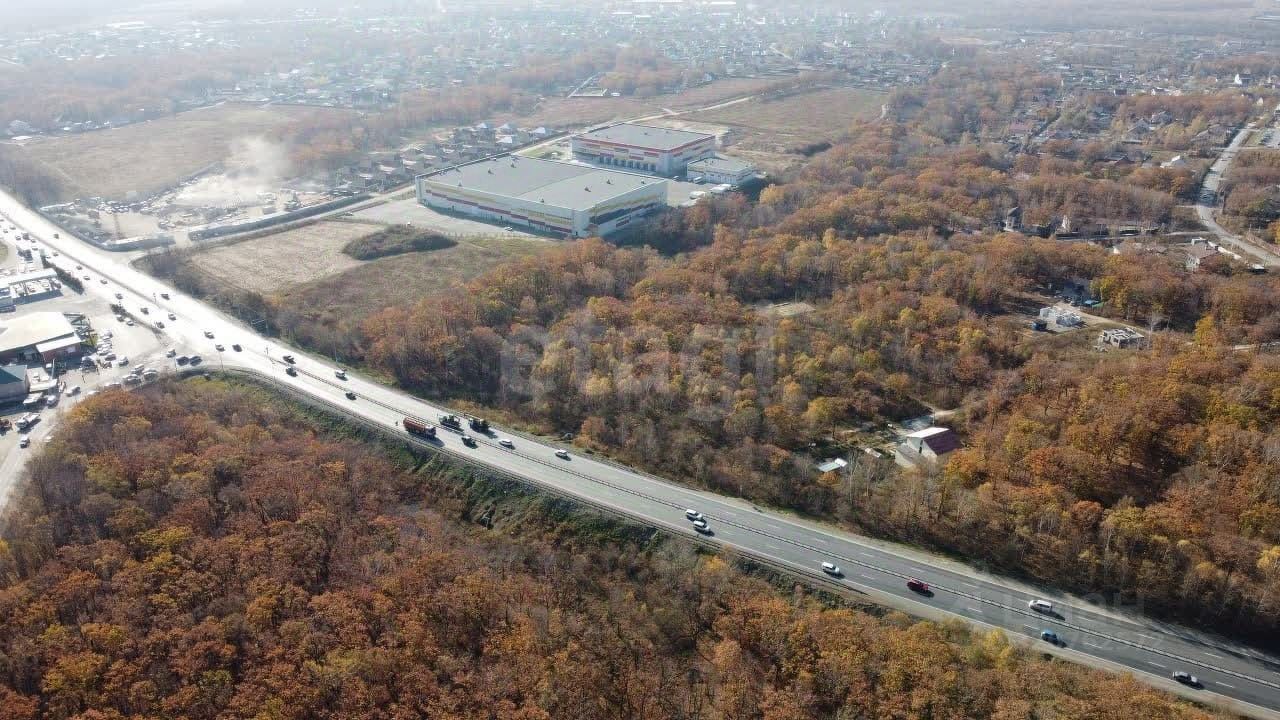 Участок расположен близко к федеральной трассе. На фото рядом с участком видны магазин "Дилан" и дома Надеждинского полесья.