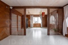* Ламинат на полу, стеновая панель на стенах (дерево)