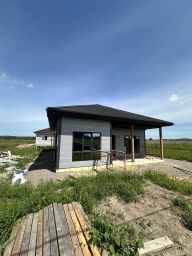 Дом построен в 2025 году по каркасной технологии с деревянными перекрытиями. Высота потолков — 3 метра, что создаёт ощущение простора и свободы. Общая площадь дома — 85,4 квадратных метров, плюс терраса 12 кв. м . В доме три спальни, гардеробная, просторная кухня-гостиная , которая станет любимым местом для семейных ужинов и дружеских посиделок.