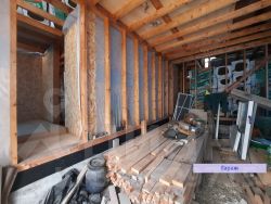 •Стены: вентилируемый фасад (каркас) из СУХОЙ КАЛИБРОВАННОЙ СТРОГАННОЙ ДОСКИ КАМЕРНОЙ СУШКИ; утепление базалит; изнутри отделка фанерой из березы 12 мм, внутренние стены: деревянные, базалит, фанерой 9 мм. Снаружи дом обшит металлопрофилем с имитацией под вагонку (текстура под дерево),
