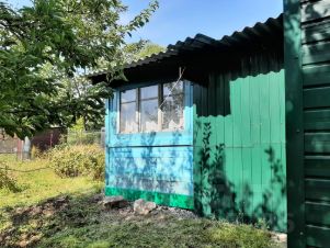 Одноэтажный дом из прямоугольного бруса с односкатной крышей, обшит сайдингом. Установлено пластиковое окно и металлическая входная дверь.В доме есть погреб.