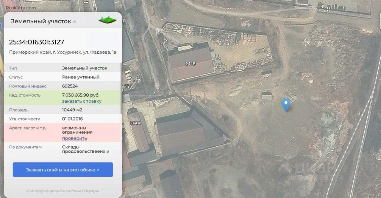 Предлагается к продаже земельный участок коммерческого назначения площадью 10 449 м², расположенный в промышленно-развитом районе г. Уссурийска, вблизи улиц Некрасова — Фадеева.