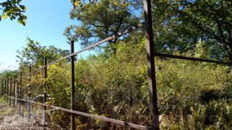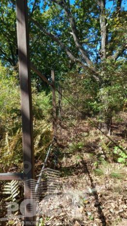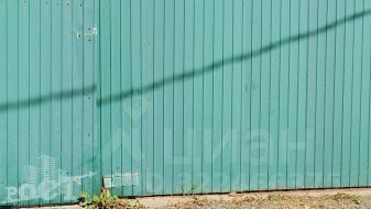 Крыша дома выполнена из металлопрофиля с уклоном. По периметру участка установлены металлические столбы для монтажа забора.