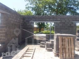 Построен из шлакоблоков, на фундаменте-армированнаяы плита, который обеспечивает долговечность и устойчивость конструкции.