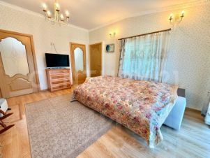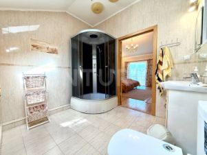 Дом из блоков с бетонным фундаментом, крышей из металлочерепицы и фасадом из сайдинга. Внутри ламинат, в двух комнатах — паркет из ясеня. Перекрытия деревянные, стены оклеены обоями.