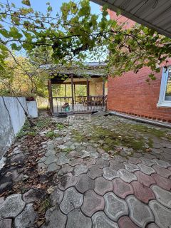 Во внутреннем дворике красивая веранда и зеленый "коридор" из винограда