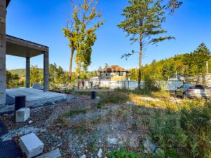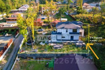 Участок выровнен, отсыпан скальником (около 100 машин), по периметру укреплен стеной из габиона. Сделан качественный дренаж во всему участку. К участку ведут 2 дороги, вторая с задней стороны участка упирается в гараж дома.