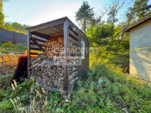 • Крытая беседка с кухней из клееного бруса, размером 5х8 метров, толщина стен 210 мм. Установлена полноценная кухня с варочной панелью и посудомоечной машиной. Также есть дровяная печь.