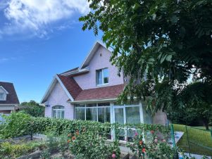 Основные характеристики: Год постройки: 2006 г. Фундамент - ленточный, стены из пенобетонных блоков, утеплены сайдингом- стеновые панели Ханьи. Крыша — мягкая кровля Технониколь. Отопление: Электрическое, мощность 15 кВт. Водоснабжение и канализация - городские системы. Системы безопасности: видеокамеры, сигнализация. Дополнительные постройки : Баня с подсобным помещением для хранения инвентаря и навесом, зона барбекю.