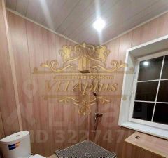 1 этаж оштукатурен под чистовую отделку,установлен потолок,полтелен пол.