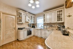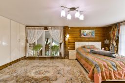 Дом выполнен в трех уровнях. На каждом из этажей есть спальни и санузлы. Всего в доме 5 спален, размер которых очень оптимальный: не огромные , но и не маленькие, уютные, дающие возможность для уединения. На 3-м мансардном этаже есть санузел, гардеробная и две спальни; одна из спален имеет свою лоджию, а также прекрасный внутренний балкончик с видом на двухсветное пространство каминной, расположенной на 2 этаже. Также на втором этаже расположены гостиная, санузел, прихожая, кухня , столовая, из которой есть выход на стеклянную просторную веранду. С веранды открывается панорамный обзор на сад. Первый этаж разделен на две части техническую и жилую. В жилой части расположены две спальни и санузел с постирочной, в технической (цокольная часть) находятся гараж на два автомобиля, котельная, кладовая для хранения заготовок.