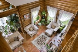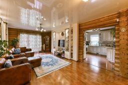 Конструктив: второй и третий этажи дома выполнены из ангарской сосны - оцилиндрованного бревна диаметром 22 см; первый (цокольный этаж) - из блоков ФС. Перекрытие первого этажа - сборные железобетонные плиты, перекрытие второго этажа деревянные фермы по канадской технологии. Фасад дома - японский сайдинг Ничиха, кровля металлочерепица. Отделка: стены - гармоничное сочетание открытого дерева с декоративным кирпичиком и прекрасных обоев, потолки натяжные, полы - ламинат и итальянский керамогранит, двери ясень и очень качественные пластиковые конструкции ( на балкон и лоджию раздвижные) .