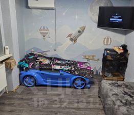 Детская комната выполнена в стиле космос, светлая, просторная, в комнате хороший массивный ламинат с утеплённой подложкой ( пол не будет холодным) светло-серый натяжной потолок.