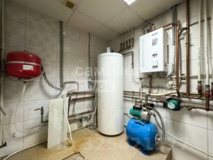 # В цоколе теплый гараж на 2 машины, ворота и гараж открываются с пульта, тех.комната, котельная, комната с запасными резервуарами для воды, 3 подсобных помещения и санузел. Есть возможность сделать отдельную, большую комнату для постоянного проживания обслуживающего персонала.
