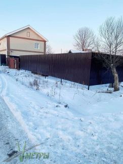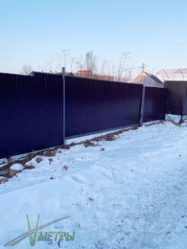Половина участка огорожена забором из металлопрофиля.