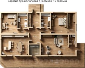 - две спальни, в одной — гардеробная с окном (10,7 м );