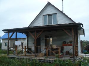 2. Гостевой дом с функцией бани, 60 кв.м (2 этажа) + терраса 28 кв.м. Дом обшит сайдингом. Постройка из газосиликатного блока автоклавного отвердевания. 1 этаж: комната для отдыха 20 кв.м., парная - 5 кв.м., душевая совмещенная с санузлом - 5 кв.м. Теплый пол в комнате и в душевой, установлен радиатор отопления. 2 этаж: комната отдыха 25 кв.м с гардеробной. Горячая вода - эл.водонагреватель. Полностью готов для круглогодичного проживания. Отопление - твердотопливное.