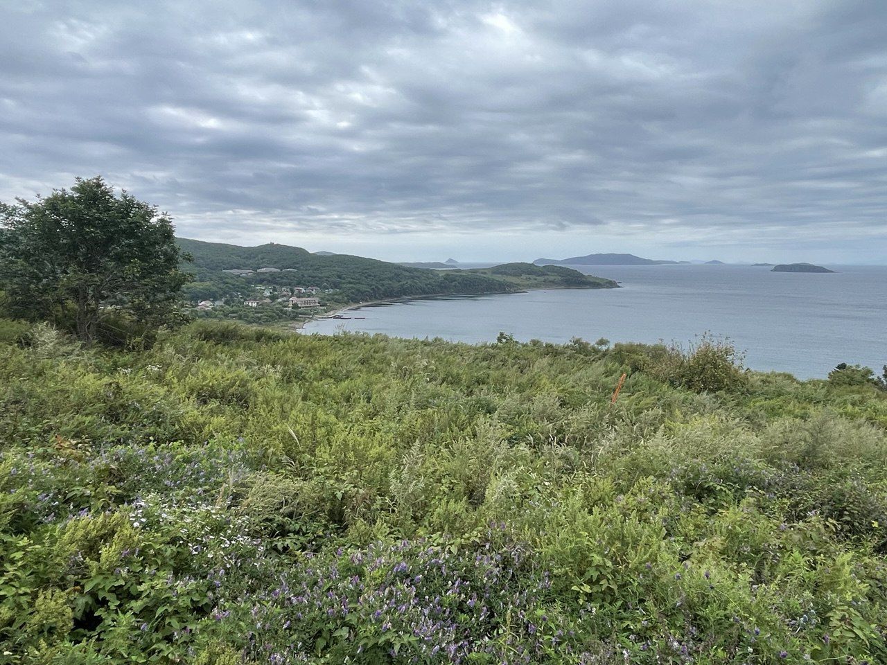Вид и расположение: панорамный вид на Амурский пролив, бухту Западную, прекрасный ансамбль — море, пляж и зелёный ландшафт.