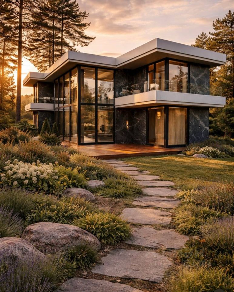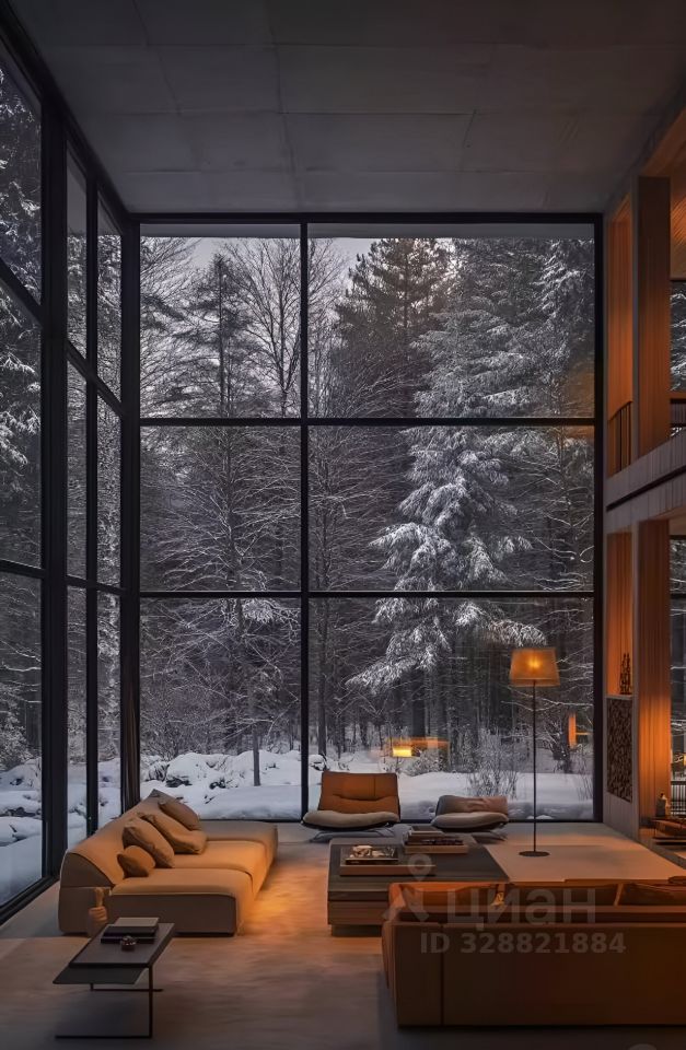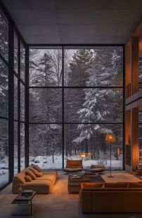 Панорамные окна с видом на лесную чащу