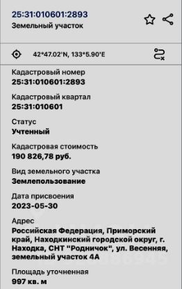 Предлагаем к покупке хороший земельный участок в СНТ "Родничок ", район п. Врангель. Участок 997 кв.м., в собственности, без уклона и прекрасным расположением. Выполнена планировка участка.