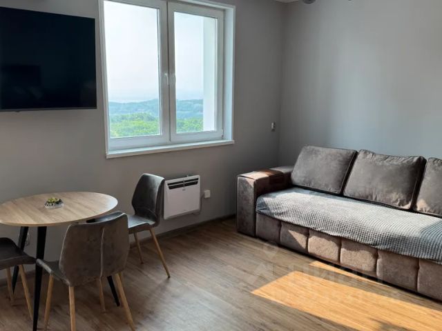 Квартира с новеньким ремонтом и невероятно красивым видом на Русский мост, а также море и лес. Находится в новом ЖК комфорт-класса, в котором есть вся важная инфраструктура: продуктовый магазин, пункт выдачи "Озон", закрытая детская и спортивная площадки с небольшим баскетбольным полем, эксплуатируемая крыша, территория со шлагбаумом, видеонаблюдением и охраной 24/7. До моря и небольшого пляжа 15 минут пешком.