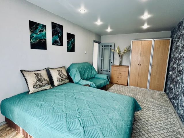 В первой спальне: большая двуспальная кровать и диван, который раскладывается также на два спальных места. В спальне большие витражные окна и выход на просторный балкон.