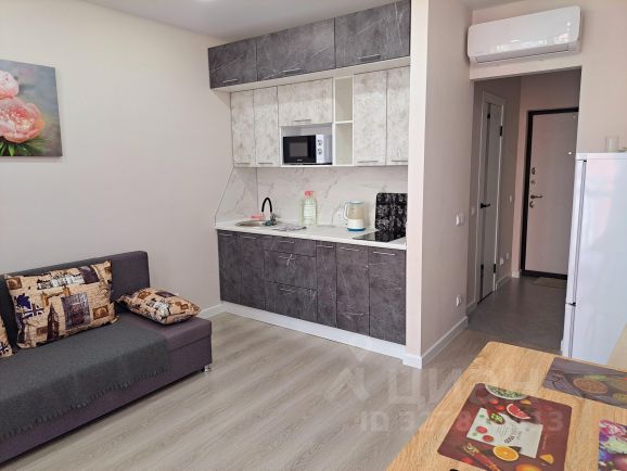 В квартире свой кухоный блок (холодильник, чайник, индукционная печь, микроволновка, посуда)