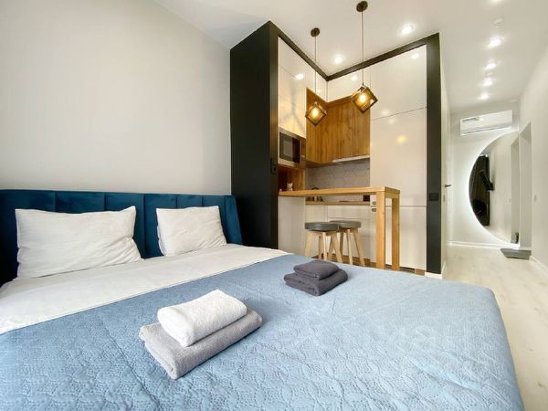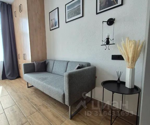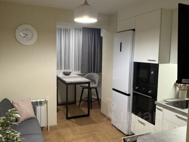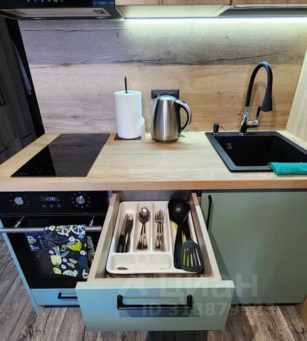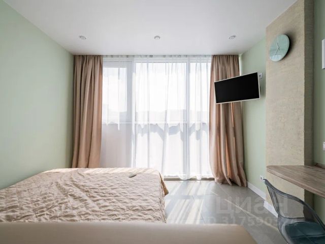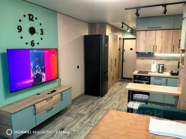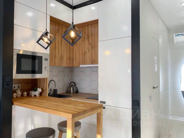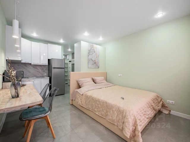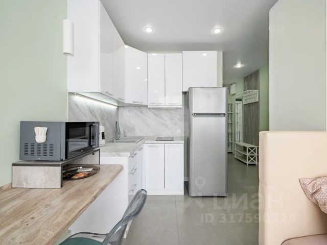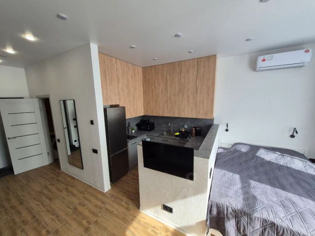 В квартире сделан дизайнерский ремонт. Пространство оптимально организовано, что делает студию комфортной для проживания. В комнате и на кухне есть вся необходимая мебель.