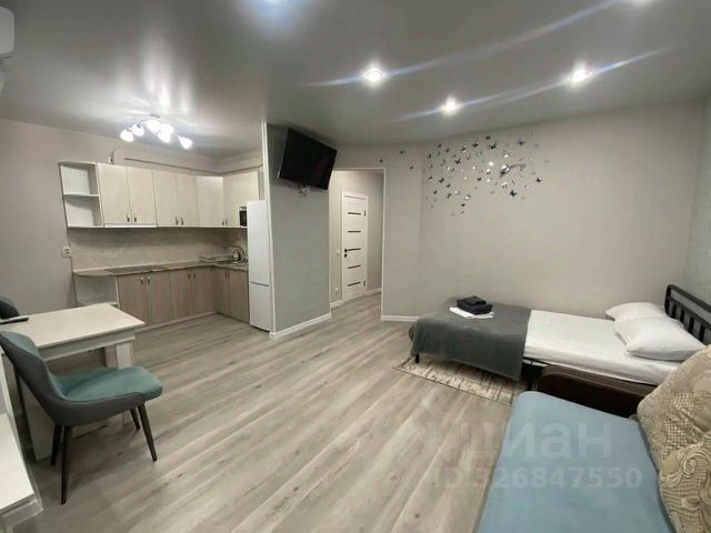-Кухня -гостинная с 2 спальным раскладным диваном, обеденным столом, телевизором и укомплектованной кухней;