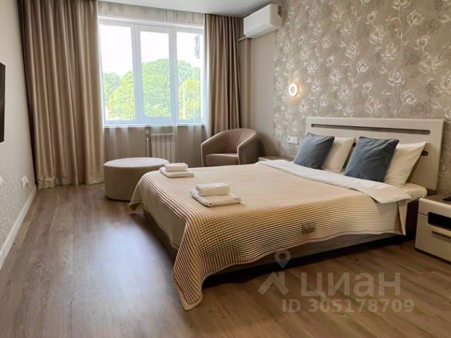 Уютная квартира в очень спокойном районе. В квартире есть все для комфортного проживания две спальни, большой зал, вместительная гардеробная. В пешей доступности магазины, сбербанк, городская аллея. В 10 минутах езды пляж рица с рестораном и набережной. Пляж якорь с аквапарком. Так же в 5 минутах езды находится трц мега. Обращаем ваше внимание на то, что стоимость аренды меняется в зависимости от количества суток проживания, количество человек, спроса (сезонность, праздники и выходные дни). Точную стоимость на ваши даты узнавайте. Обращаем ваше внимание: - Заселение производится только по предъявлению паспорта(водительского удостоверения) с 14. 00, выезд до 12: 00 (время можно скорректировать по договоренности); - Заселение от 2-х суток; - При заселении взимается страховой залог, который возвращается после уборки квартиры. Запрещено: - Не курить (кальяны, системы нагрева табака, электронные сигареты в том числе). В противном случае страховой залог не возвращается, он покроет расходы на устранение запаха. Курить только на улице. - Квартира не сдается для проведения различных шумных мероприятий. - Квартира не сдается молодым людям до 25 лет (исключение составляет молодые семьи) На сайте фарпост и циан существуют индивидуальные скидки для гостей