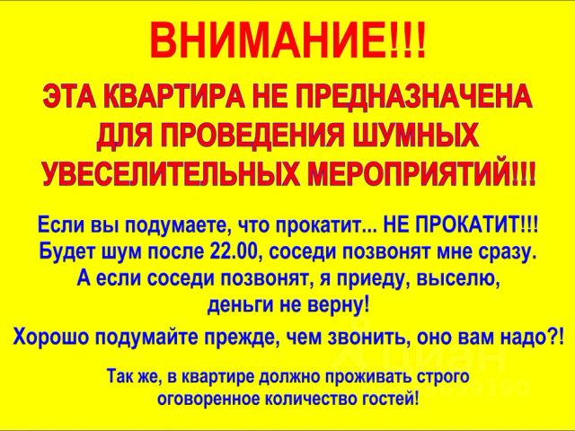 Для проведения шумных увеселительных мероприятий НЕ СДАЕТСЯ!
