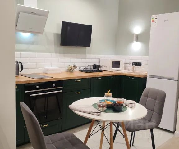 Бытовая техника: кабельное TV, стиральная машина-автомат, водонагреватель, полный комплект кухонной техники (чайник, индукционная плита, микроволновая печь, вытяжка, холодильник), полный набор посуды и столовых приборов, утюг, фен, кондиционер, сушилка для белья.