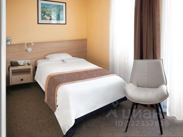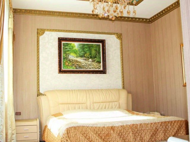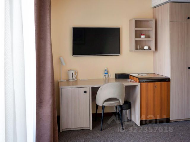 Номер люкс с одной 2-спальной кроватью, рабочей зоной, диваном и ванной комнатой. В номере предусмотрено индивидуальное и общее освещение, конвектор с регулятором температуры.