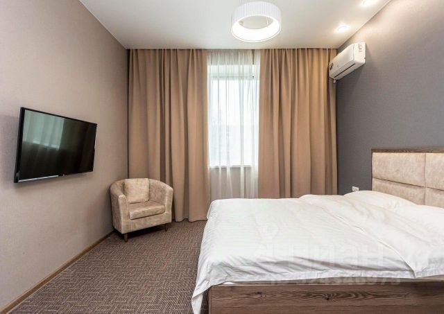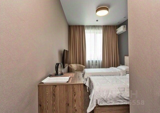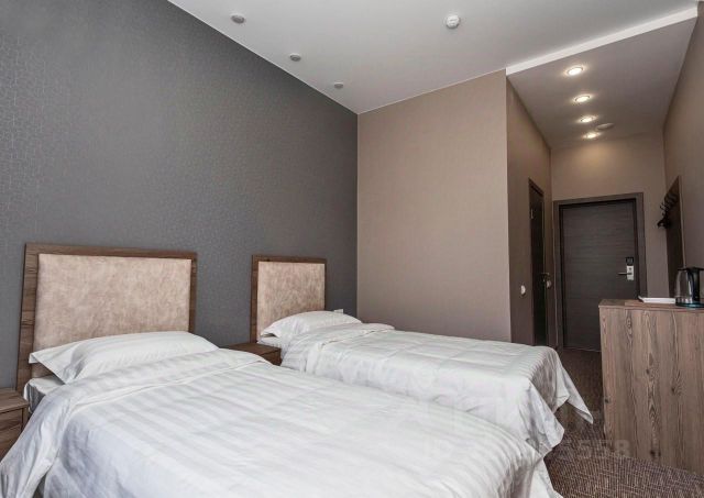 Номер люкс с одной 2-спальной кроватью, рабочей зоной, диваном и ванной комнатой. В номере предусмотрено индивидуальное и общее освещение, конвектор с регулятором температуры.