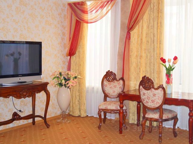 К услугам гостей 32 номера категории "Стандарт" "Улучшенный" и "Люкс". Просторные роскошные номера оснащены комфортабельными спальными местами, шкафом для хранения одежды, телевизором, чайником, персональной ванной комнатой с современной душевой кабиной, в некоторых есть балкон.