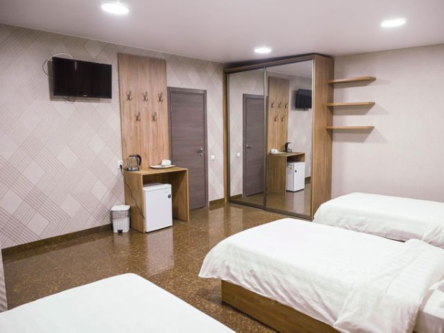 Каждый номер предлагает набор современных удобств и услуг: место для отдыха и работы, спутниковое телевидение (LED ТВ диагональю 43 дюйма) c международными каналами, телефон с прямым международным выходом, индивидуальный сейф, фен, полностью укомплектованный минибар, набор посуды, электрический чайник, будильник, беспроводной Интернет. В отдельной ванной комнате - необходимые разовые принадлежности: шапочка для душа, мыло, шампунь, гель для душа, расческа, бритвенный станок, зубной набор. В номерах гостям предоставляются разовые тапочки и халат, чай, кофе, сахар, сливки, бутилированная вода 0,5 л. Во всех комнатах центральное кондиционирование и отопление. По желанию в двухместном номере и полулюксе можно установить одну дополнительную кровать за отдельную плату. Для детей в возрасте до 3-х лет бесплатно предоставляется детская кроватка.