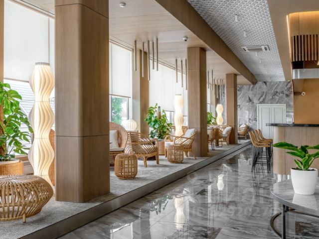 Гостиничный комплекс находится в п. Врангель Приморского края, в 300 м от пляжа. Удобное местоположение делает его привлекательным местом для проживания людей на время деловых командировок и для многочисленных туристов со всех стран мира. На территории есть 2 площадки для спортивных игр ( футбол, баскетбол, волейбол), беседки, детская площадка и 3 бассейна. На 1 этаже расположены банный комплекс (русская парная, хамам), тренажерный зал, столовая. В каждом номере WiFi, спутниковое телевидение, кондиционер, душевая комната. Просторный номер с кухонной зоной и видом на море. В комплектацию номера входят: двуспальная кровать "queen-size", диван, шкаф-купе, телевизор со спутниковым телевидением, письменный стол, телефон, кондиционер, кухонная зона (с обеденным столом, холодильником, СВЧ-печью, чайником, набором посуды на 2 персоны). Так же в номере отдельная ванная комната с душевой кабиной, феном и необходимыми туалетными принадлежностями.