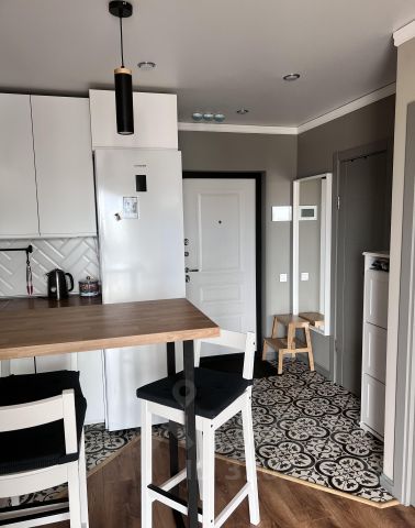 В квартире сделан дизайнерский ремонт. Пространство оптимально организовано, что делает студию комфортной для проживания. В комнате и на кухне есть вся необходимая мебель, техника