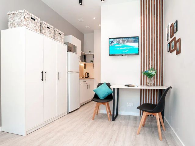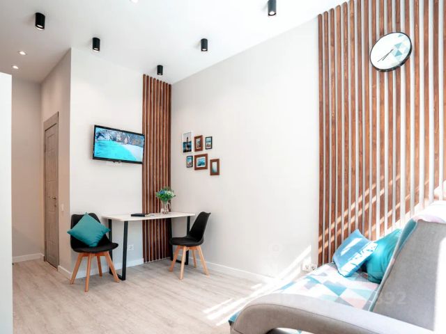 Двухуровневая квартира в стиле лофт площадью 45 кв м.   Изюминка этой квартиры, 2 уровня. На одном уровне расположена стильная гостиная, где кирпичная стена смотрится необычно и ярко.  Оборудована  мебелью и декором. Деревянная лестница в стиле лофт, делает квартиру очень привлекательной. Кухня современная  и вместительная.