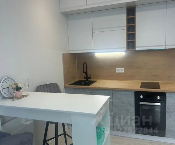 В вашем распоряжении полностью оборудованная кухня с индукционной варочной поверхностью, микроволновкой, посудомоечной машиной, вытяжкой, холодильником, посудой и кухонным инвентарем.