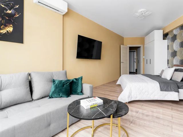 Оснащение квартиры: Всё для комфортного отдыха: кондиционер, Wi-Fi, Smart TV, полностью оборудованная кухня (плита, холодильник, микроволновая печь, духовой шкаф, посудомоечная машина, чайник, тостер, посуда), стиральная машина, сушильная машина, утюг, гладильная доска, пылесос, фен, банные и постельные принадлежности.